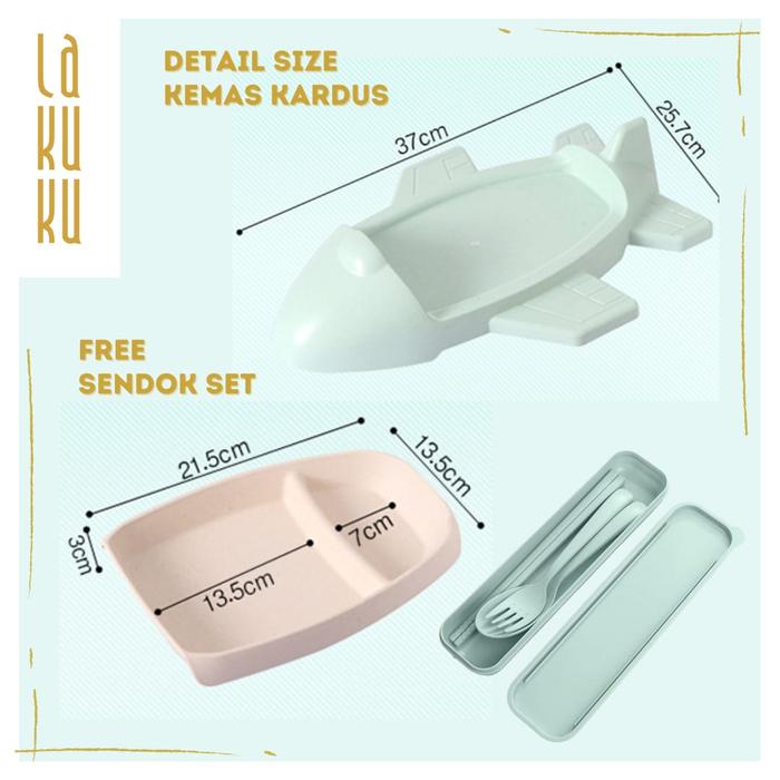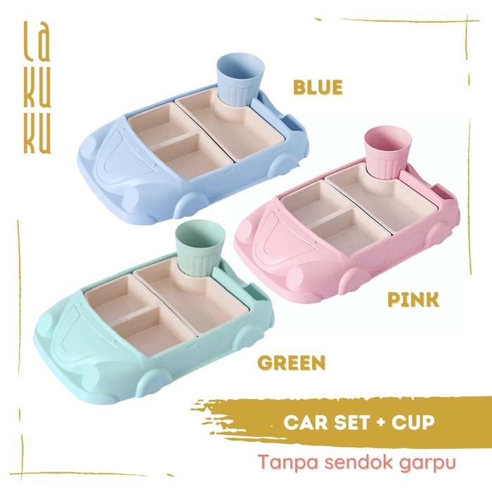 LAKUKU - KIDS FEEDING SET PP PIRING MAKAN ANAK 3D BENTUK MOBIL PESAWAT TERBANG - CAR SET + GELAS, PINK