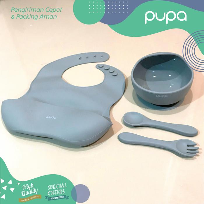 BABY FEEDING SILICONE ALAT MAKAN SET BAYI SILIKON BIB, CELEMEK SET BOWL GARPU - 3IN1 SET CREAM