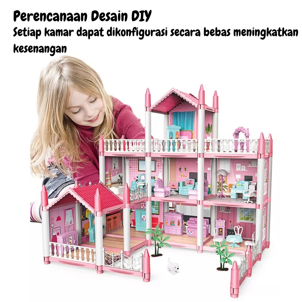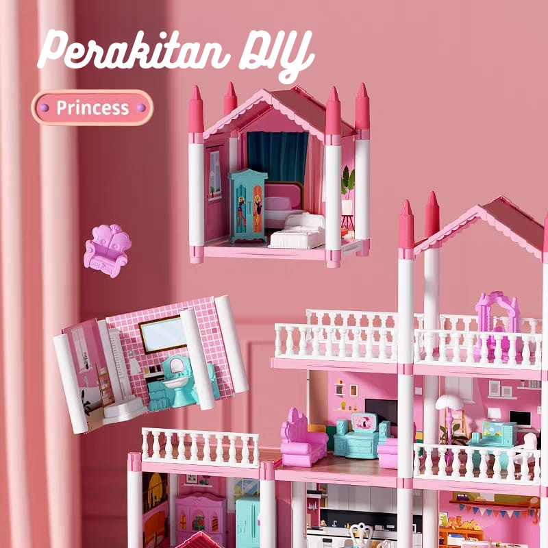 Toy Studio 3D Princess Big Villa DIY Rumah Boneka Bermain Rumah Dirakit Mainan Anak Dengan Lampu