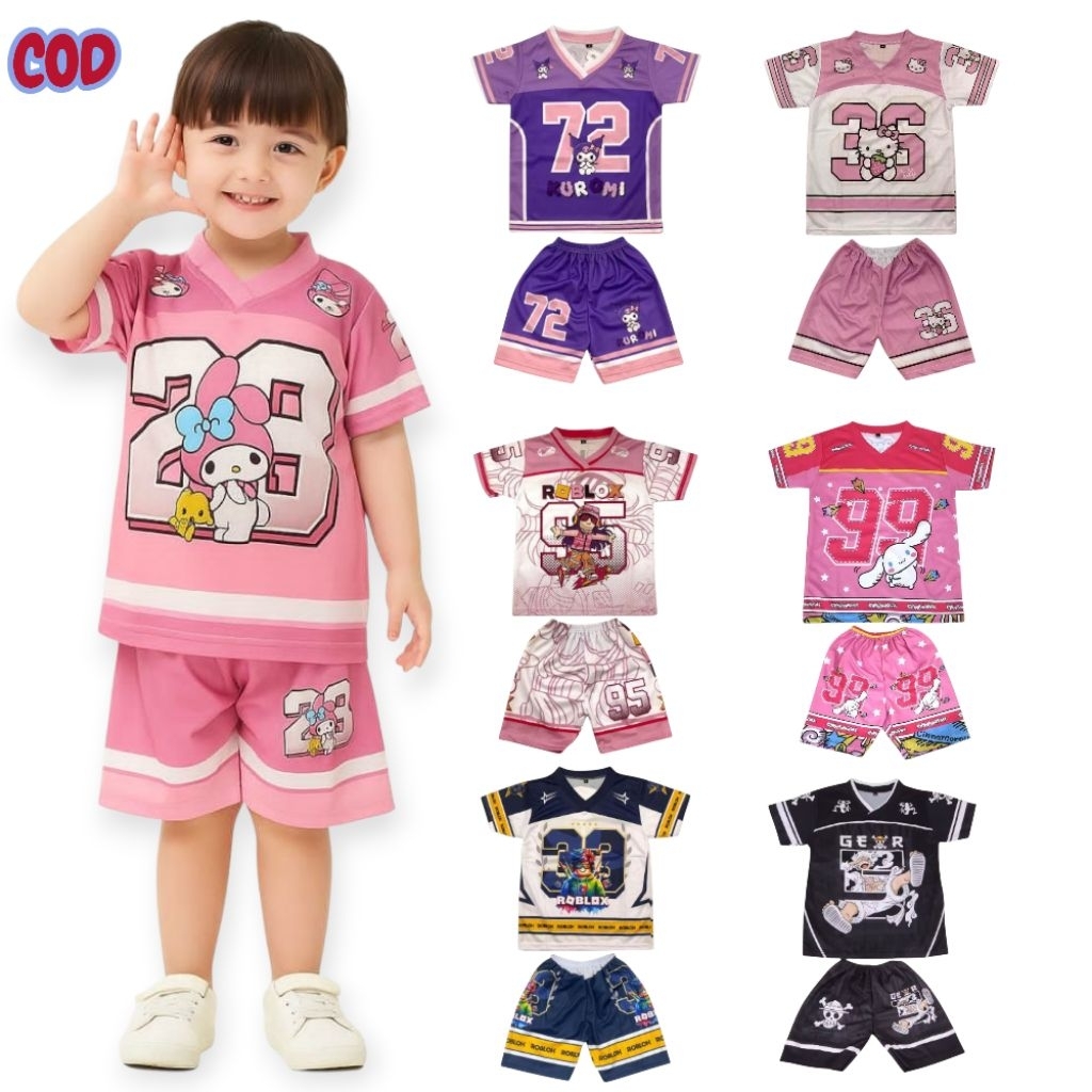 Setelan Jersey Sublim Anak Unisex Bahan Premium Bilabong Milano Bermotif Cinnamorrol 99 Hello Kitty 36 My Melody 28 K