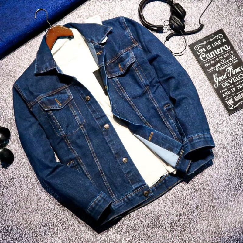 Logo Gm -Jaket Jeans Pria Sobek Bahan Tebal Tidak Luntur Premium Jaket Jeans Cowok Oversize