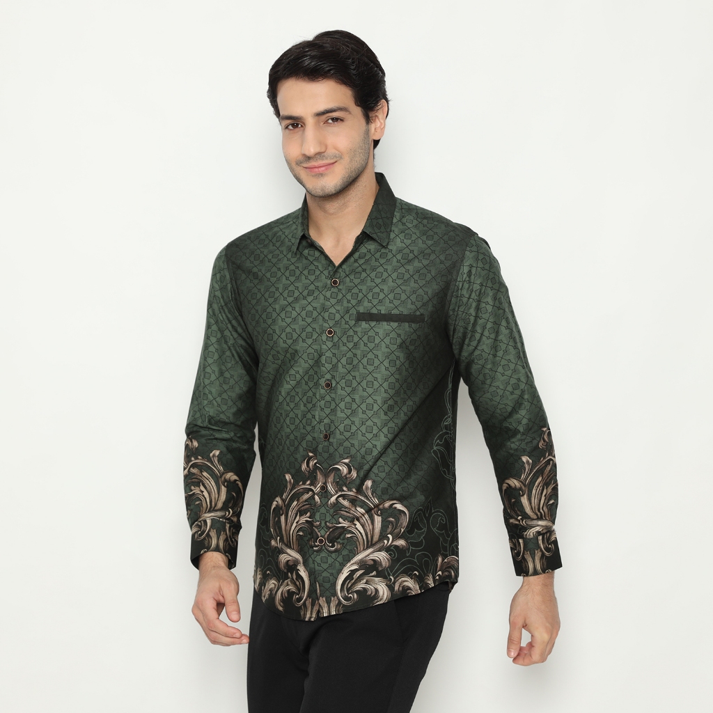 Luigi Riccio Kemeja Batik Pria Crown Emerald Green Series New Arrival Casual Kerja Kantor