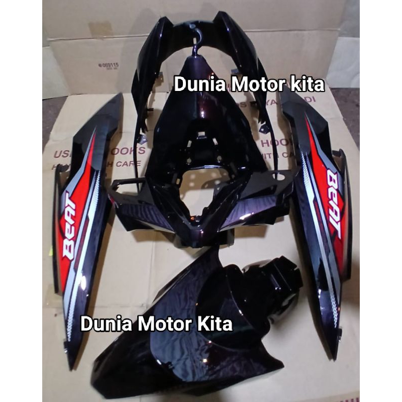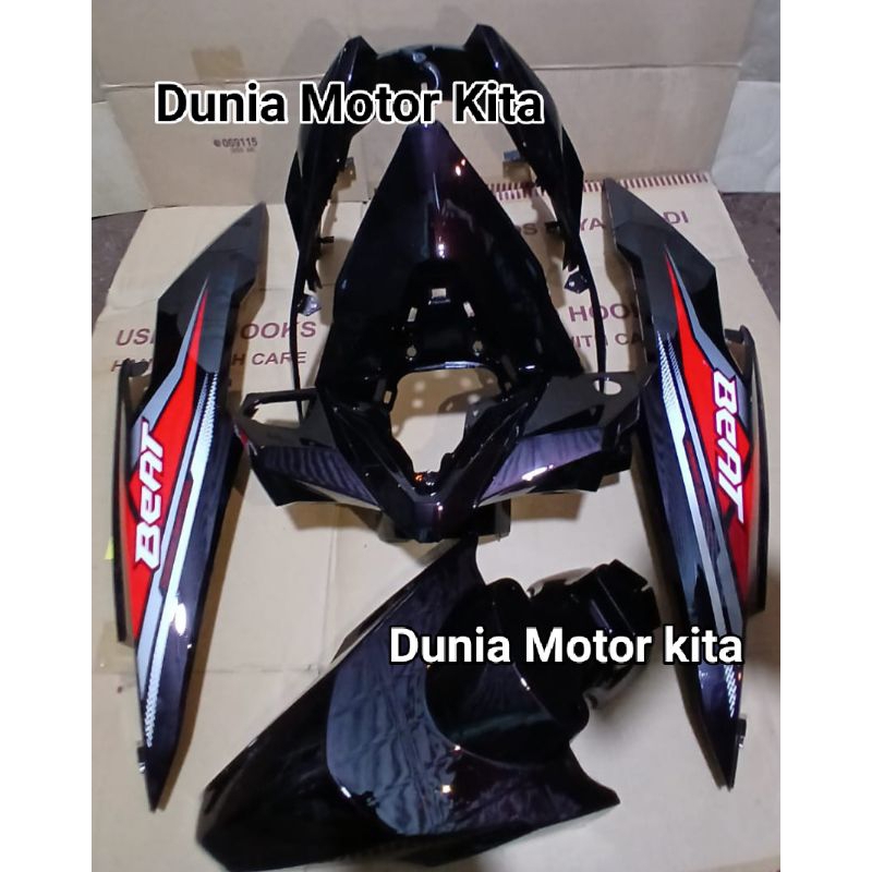 Honda Matic Cover body halus full set Honda beat fi esp beat fi eco Tahun 2017 2018 2019 2020 Custom warna Hitam lembayung merah Berikut striping Didalam clear/Pernis