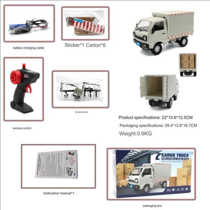 BabyToys Mainan Mobil Remote Control Truk Kargo RC Car Anak Pickup Box Carry Pick up 1:16 Kado Anak