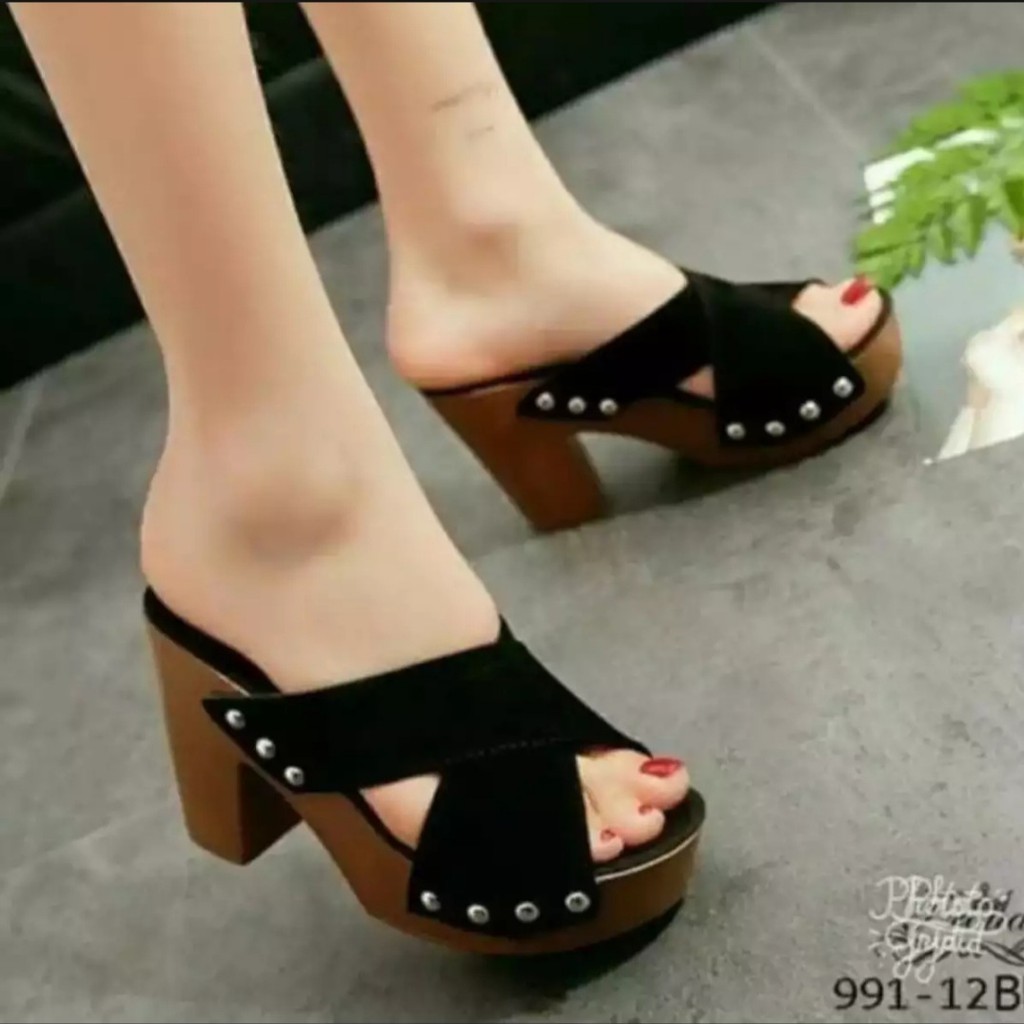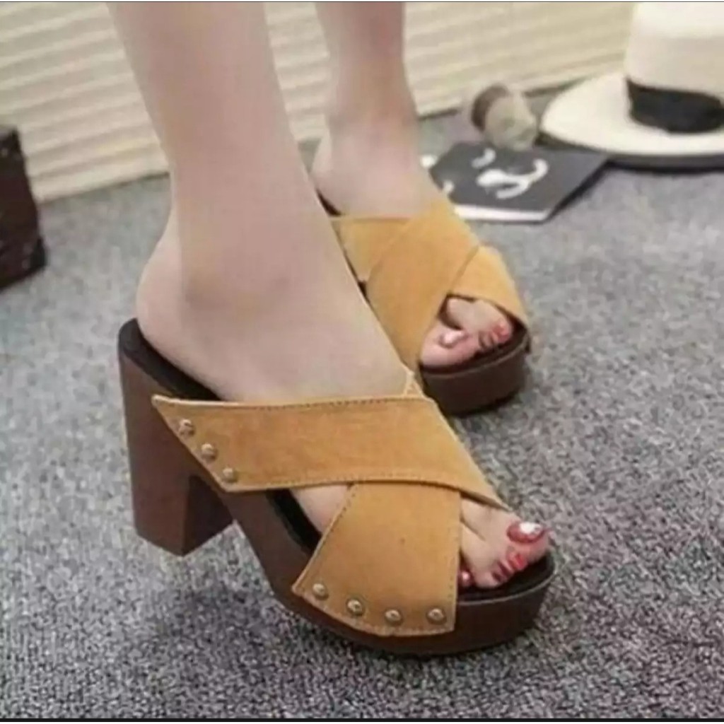 Sandal Heels Silang Selop T-47K Beludru 9Cm