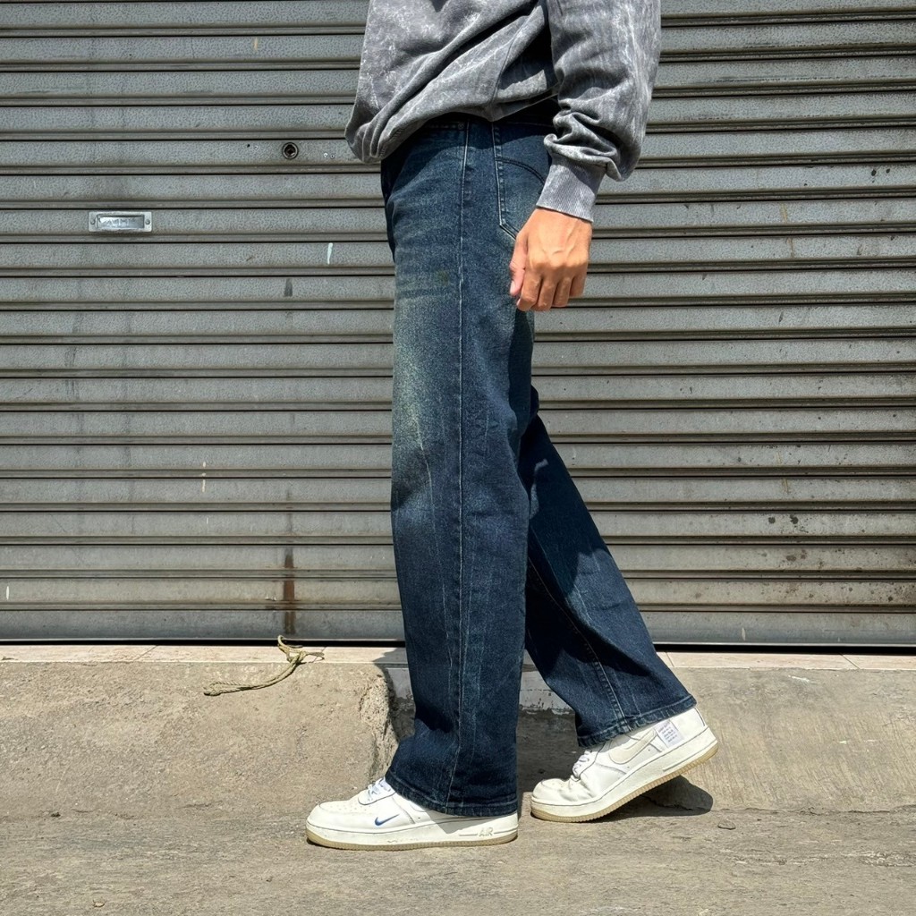 CELANA JEANS DENIM PANJANG GOMBRANG SKENA REGULER RETRO PRIA DEWASA LONGSIF