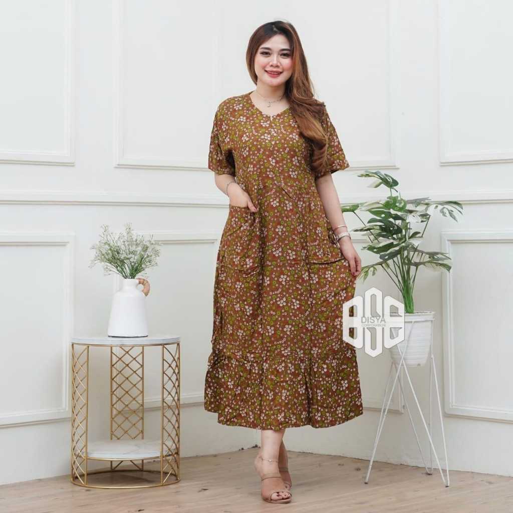 Gavindra Batik - Daster Rayon Jumbo Sogan LD 130 - Daster Wanita Busui Super Jumbo Terbaru