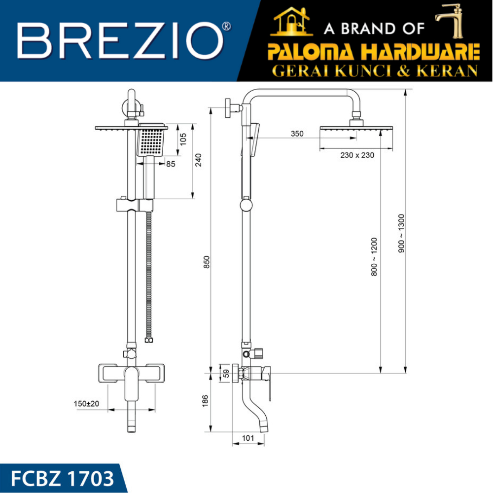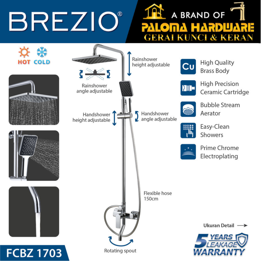Brezio Fcbz 1703 Keran Air Shower Tiang Set Mixer Panas Dingin Chrome