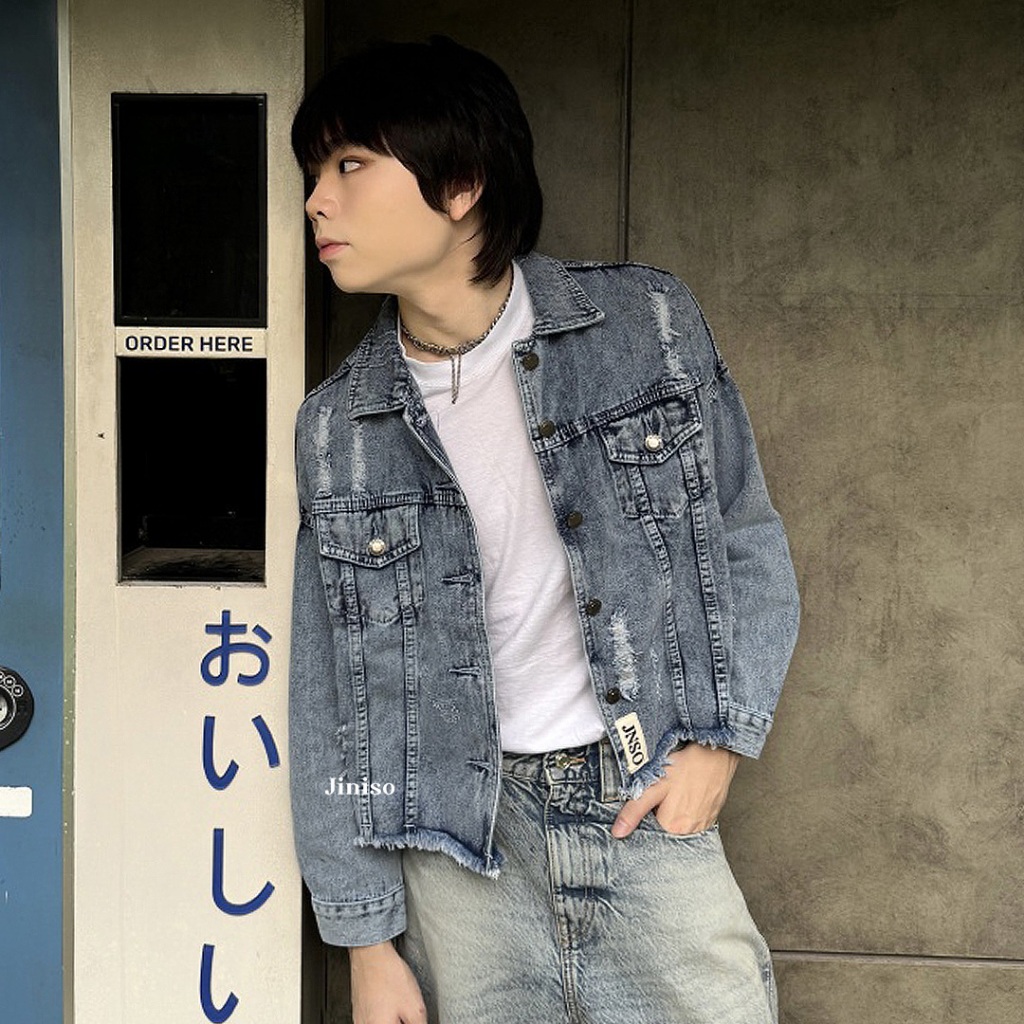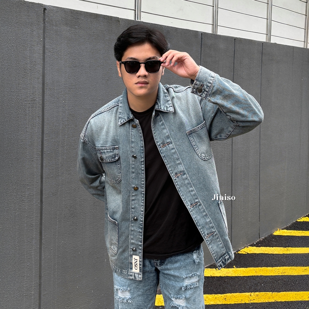 Jiniso - Pria Oversize Jaket Jeans