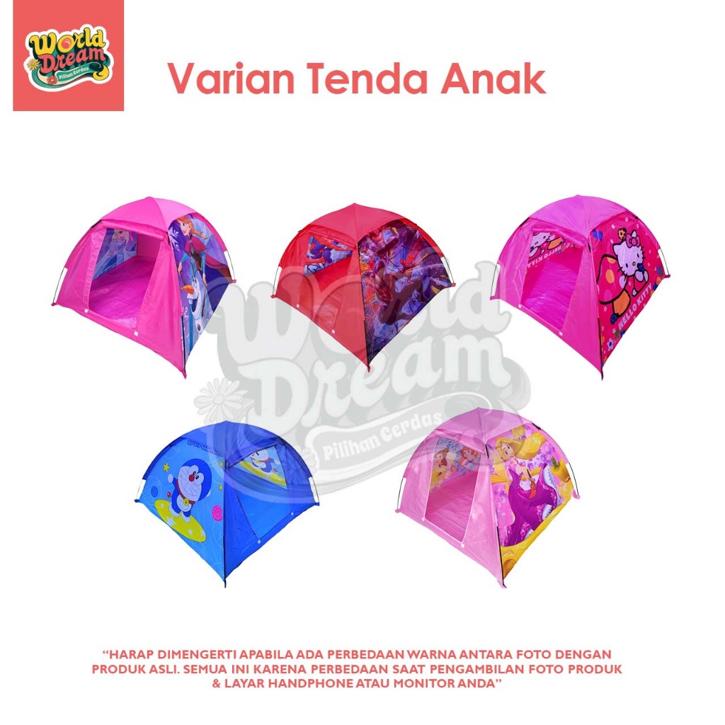 Worldream Tenda Camping Tenda Karakter Rumah Camping Motif Hello Kitty Frozen Spiderman Princess