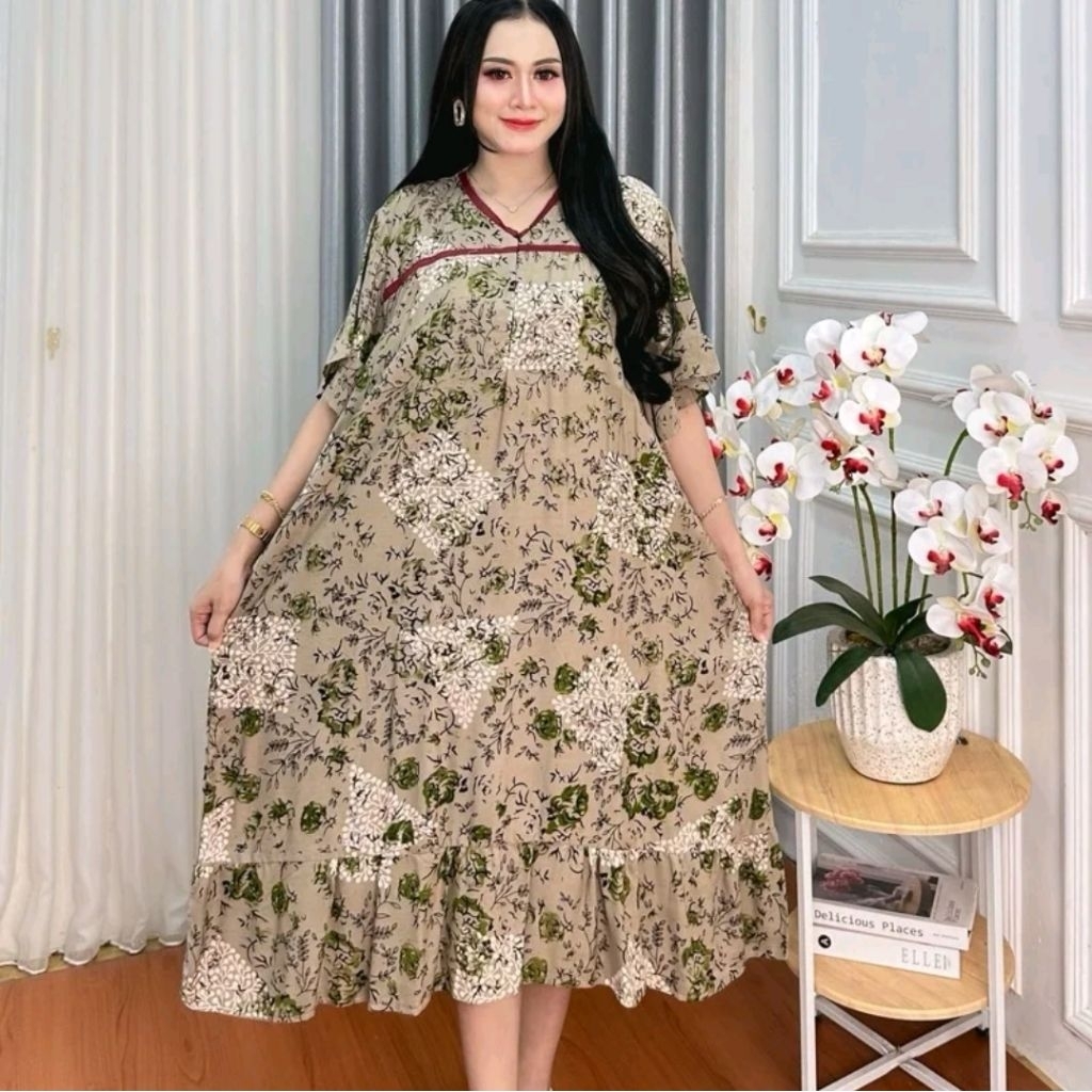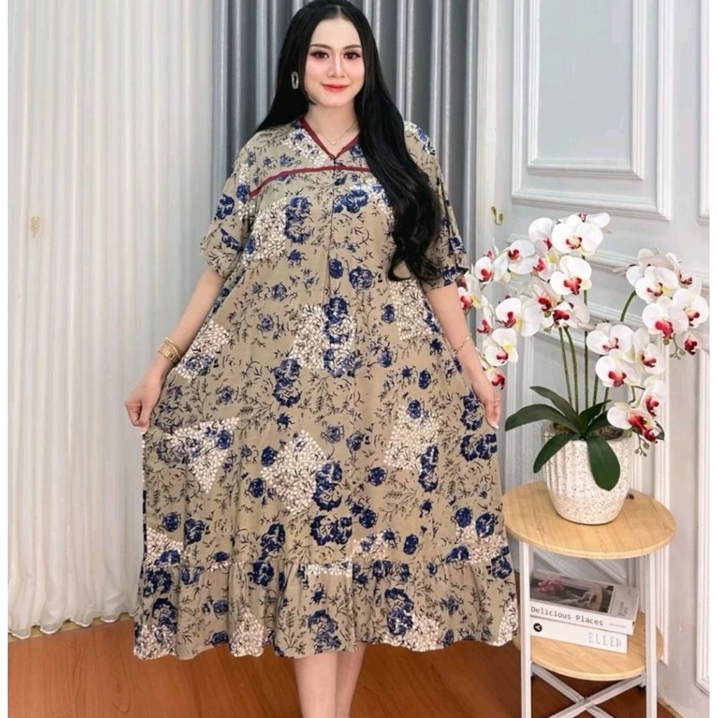 Saemoro Daster Rayon Jumbo LD 130 Wanita Busui Friendly Kekinian Terbaru Premium Resleting Depan / Daster Rayon Jumbo Bu
