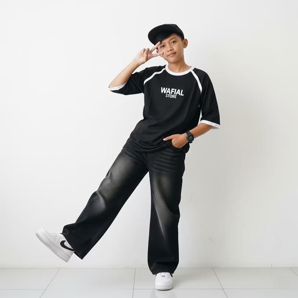 Celana Skena Anak Laki Laki Jeans Panjang Baggy Loose Gombrang Korean Style Wisker I Hitam Biru Retro/Hijau