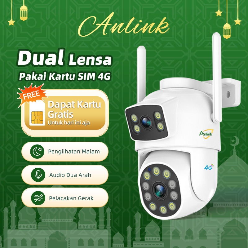 CCTV 4G Dual Lens Outdoor Tanpa WiFi 1080P Tahan Air Mudah Pasang Pantau HP Malam Jelas Gratis SIM