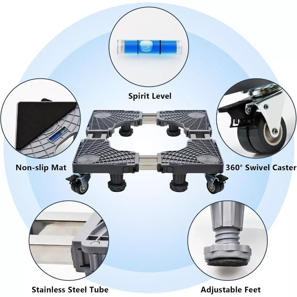 Ecosen Alas Mesin Cuci Stainless Steel Yang Dapat Disesuaikan / Alas Kulkas Dudukan Mesin Cuci /Kaki Kulkas Roda 4/ Rod