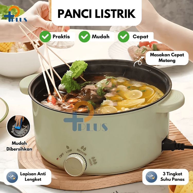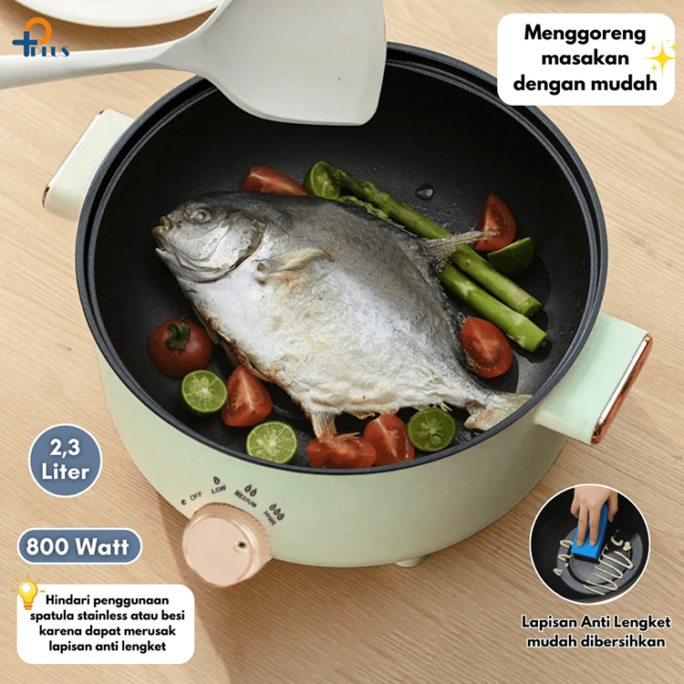 PPLUS Panci Listrik Serbanguna Anti Lenget Jumbo 2,3 Liter 800W / Panci Electric 2,3L Fry Pan anti Lengket