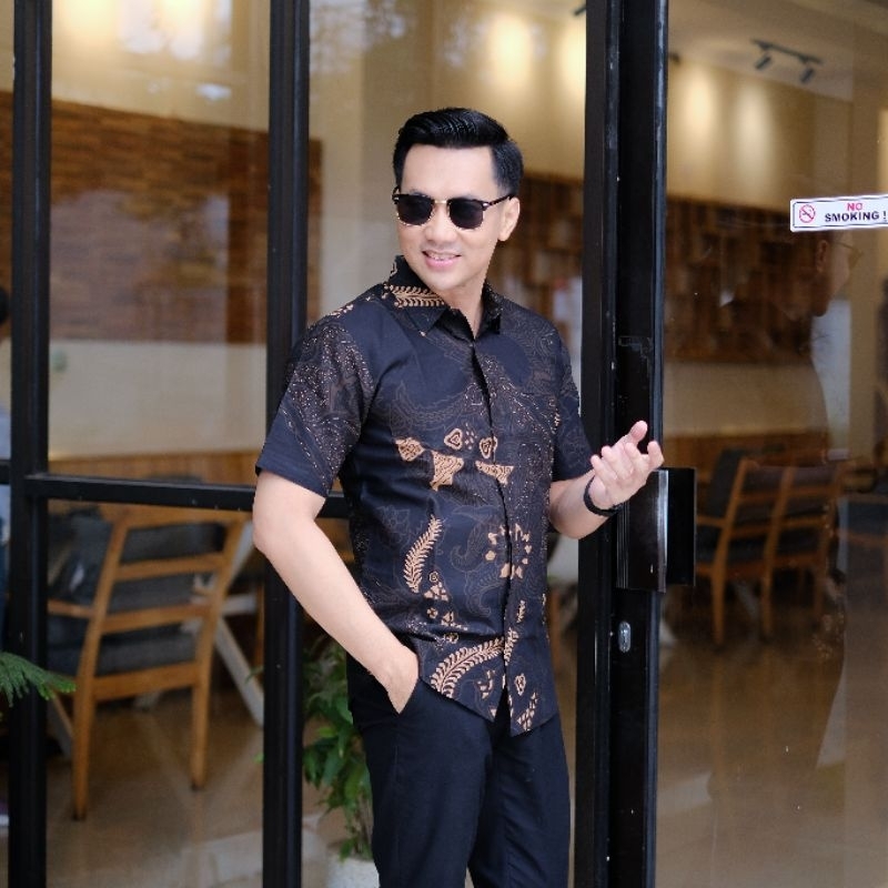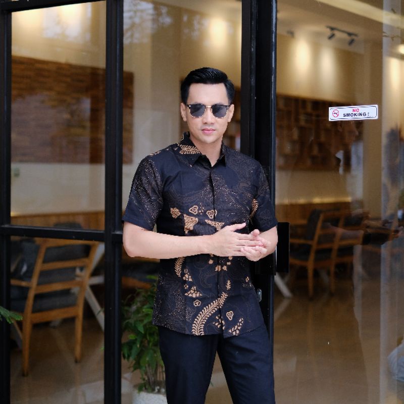 Kemeja Batik Pria Slimfit Lengan Pendek Motif Jazz Baju Batik Pria Slimfit Lengan Pendek Lapis Puring Hem Batik