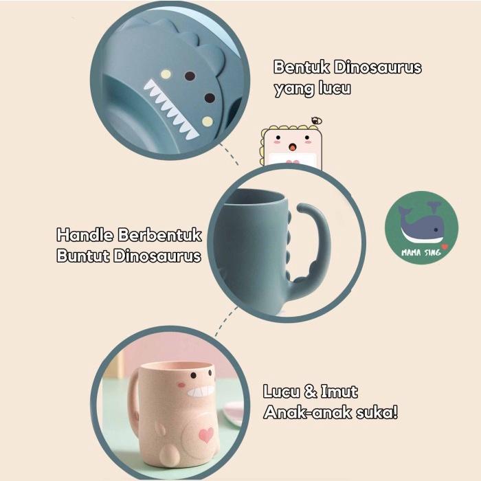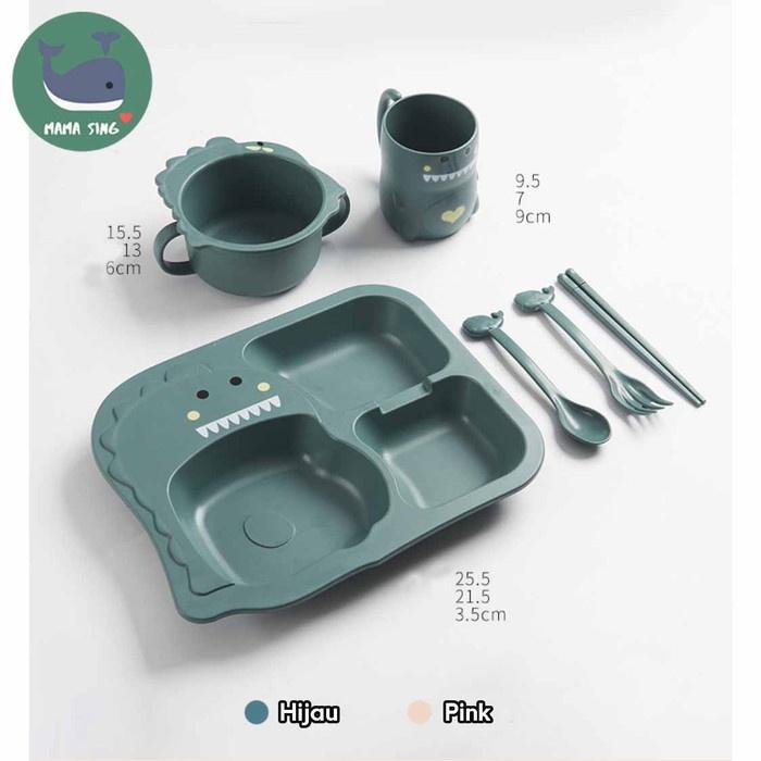 TEMPAT MAKAN ANAK DINOSAURUS LUCU & AMAN - PERALATAN MAKAN BAYI 1 SET - MERAH MUDA