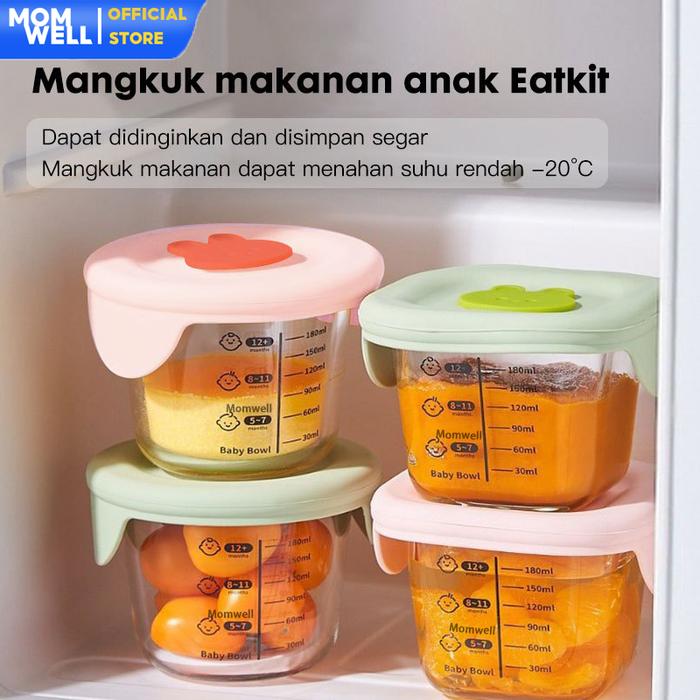 MOMWELL GLASS FOOD CONTAINER MPASI BAYI 3PCS 230ML TEMPAT MPASI KACA WADAH MPASI KACA PENYIMPANAN KUNING MERAH PERALATAN - PERSEGI-3PCS
