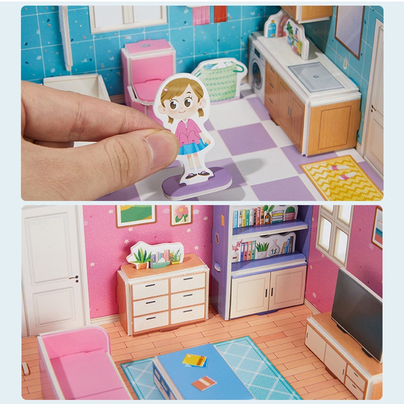 4 Buah Set 3D Puzzle Mainan Edukasi Anak Perempuan Laki Seri Interior Rumah Besar DIY Hadiah