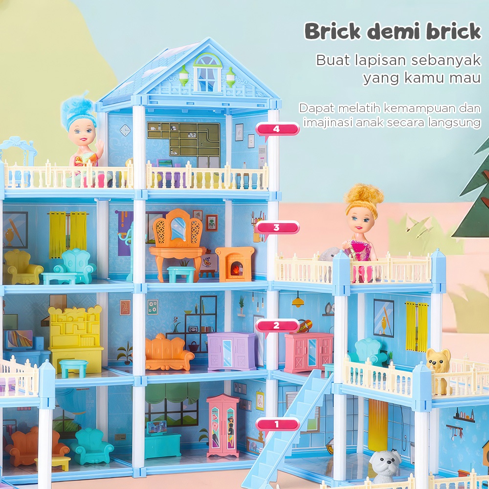 Wetech Mainan Princess Castle 15 Houses Rumah Rumahan Doll House Play House Kado Ulang Tahun Cewek