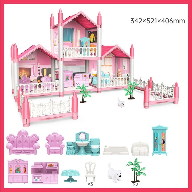 MERAKIT 4 VILLA DREAM HOUSE 3D Princess Big Villa DIY Rumah Boneka Pink Castle Bermain Rumah Dirakit Rumah Boneka Mainan