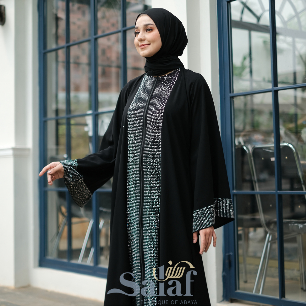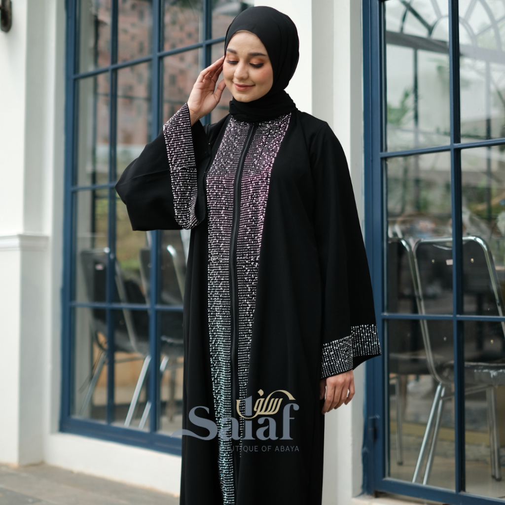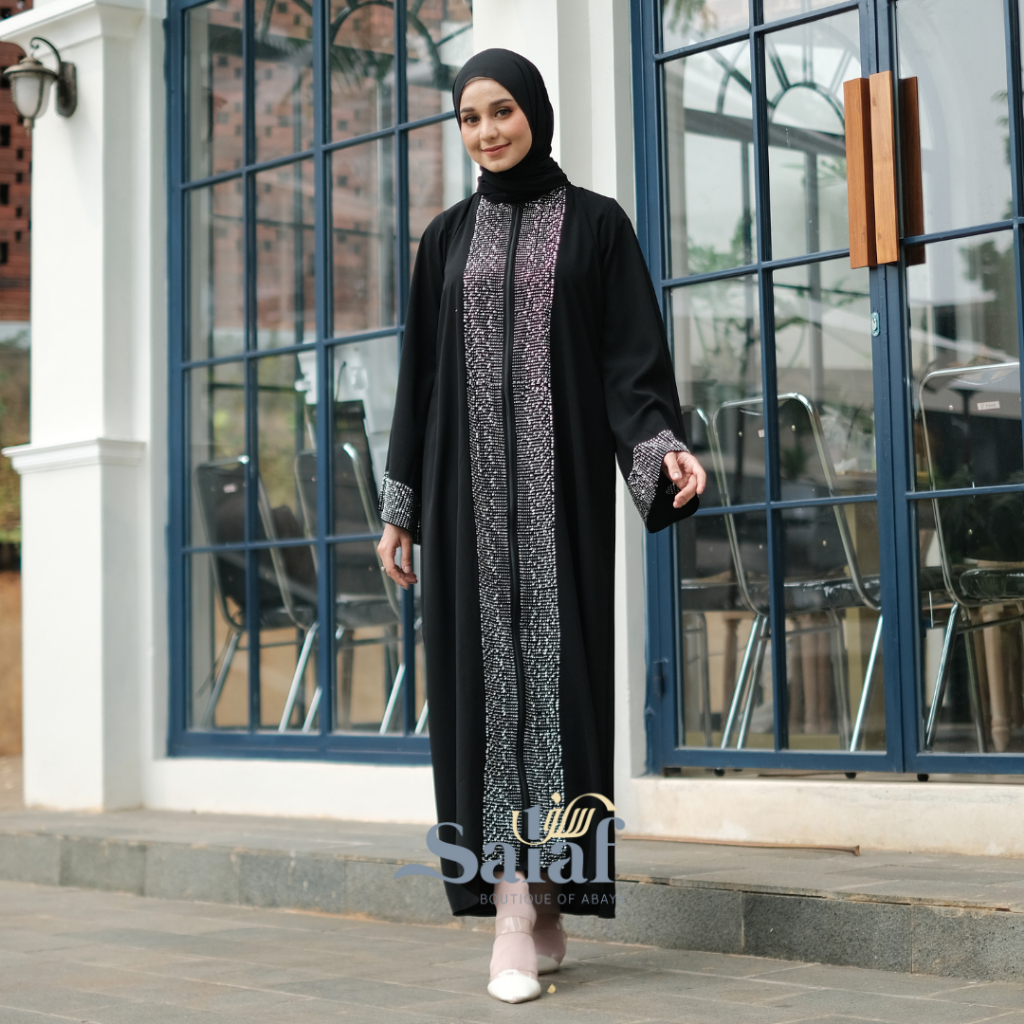 Gamis Hitam Turki Abaya Saudi Bahan Jetblack Resleting Depan Busui