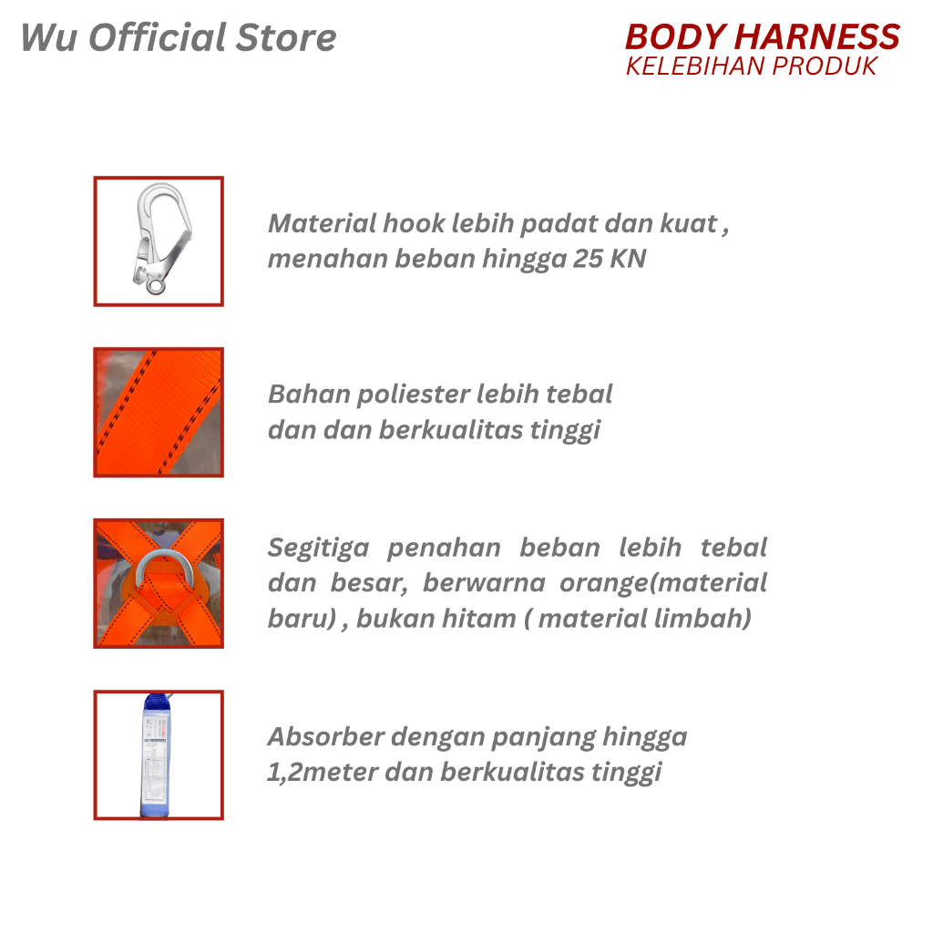 Safety Body Harness Climbing Big Hook Lanyard With Belt / Sabuk Perlindungan Keselamatan