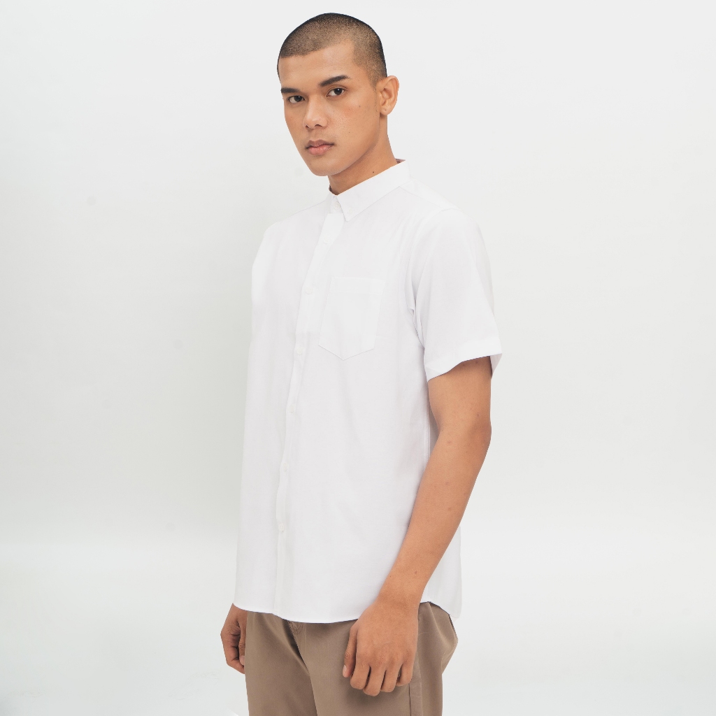 M231 Kemeja Pria Basic Polos Oxford Pendek Putih 1457T