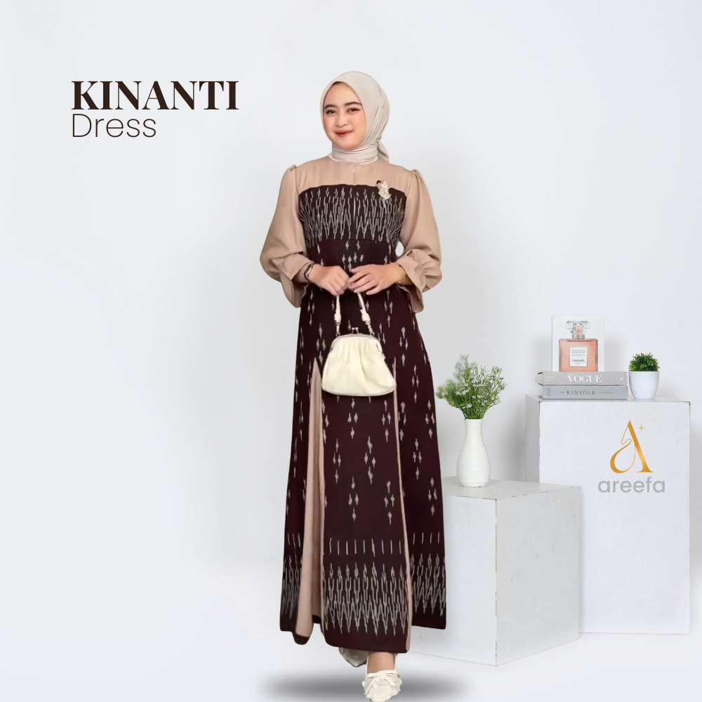 Areefa - KINANTI Gamis Dress Tenun Etnik Kombinasi Katun Premium Wanita Remaja Mahogany Pesta Mewah