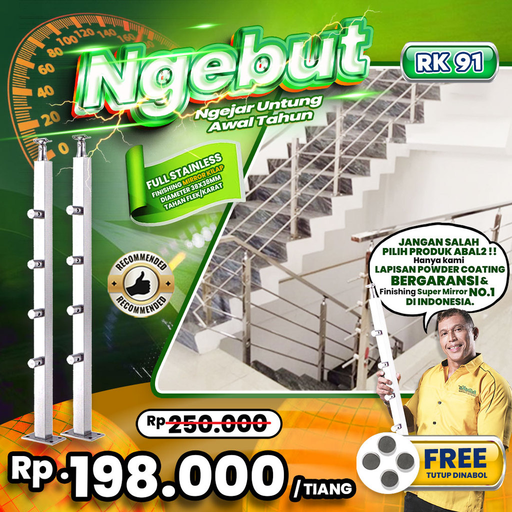 Railing Tangga Pipa Jari Jari Minimalis Tiang Railingku Rk 91 Railing Anti Karat Free Penutup Dynabolt | Garan