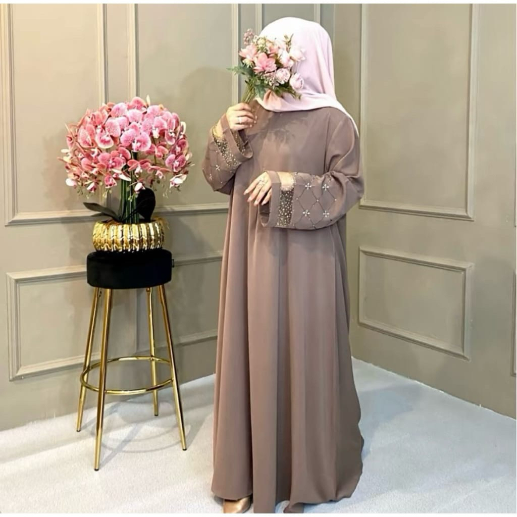 Abaya Qonita Payet Premium Gamis Muslim Anti UV Abaya Mesir Terbaru 2026 Gamis payet kristal