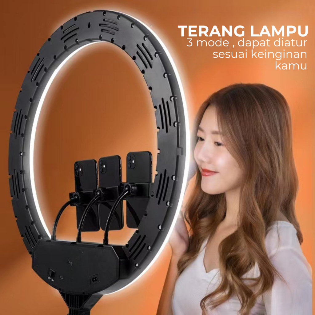Ring Light 45cm 3 Holder Handphone + Tri Stand 2M Lampu Ngonten Live Stand 3 Hp / Jumbo Ringlight