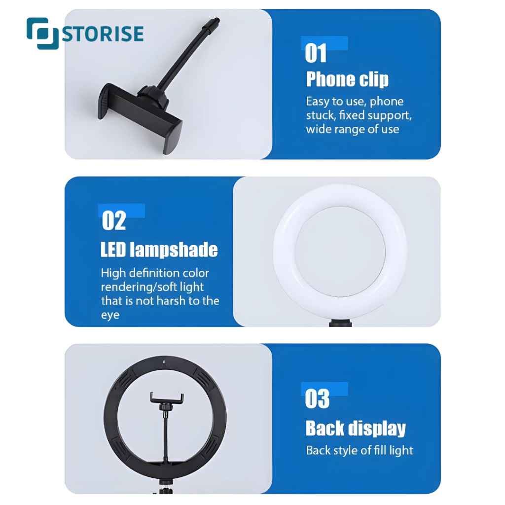 STORISE [ Paket Komplit ] Ring Light 26cm + Tri 1 Meter Stand Hp Make Up Vlog Lampu Ringlight