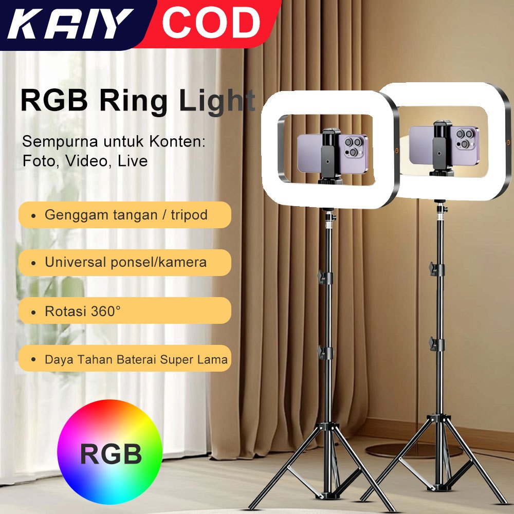 KAIY Ring Light RGB Video Light Fotografi - dengan Tri 2,1M, Suhu Warna 2500K-8500K, Adjustable 360° untuk Vlog, Makeup,