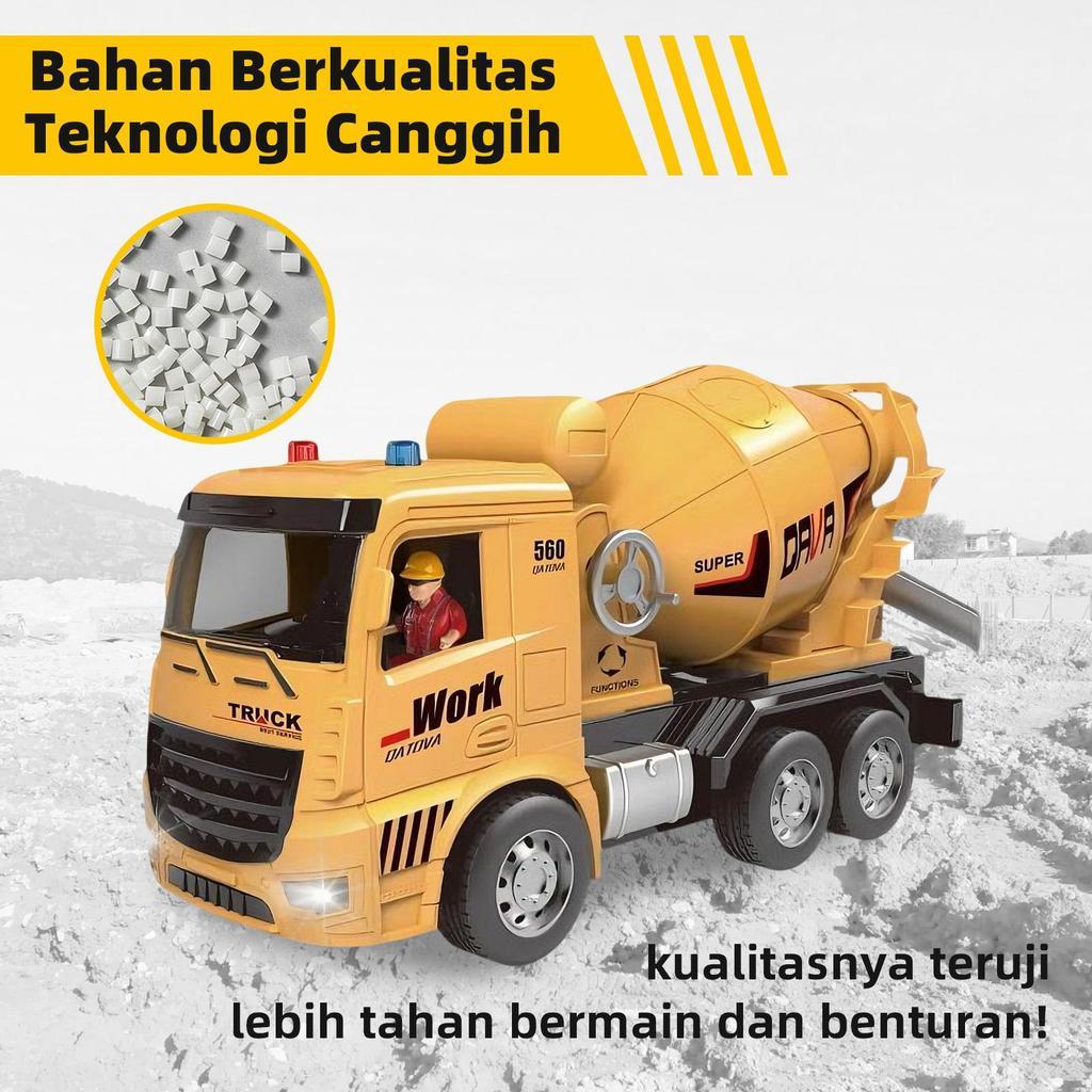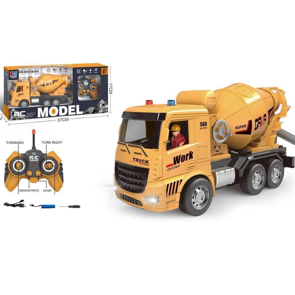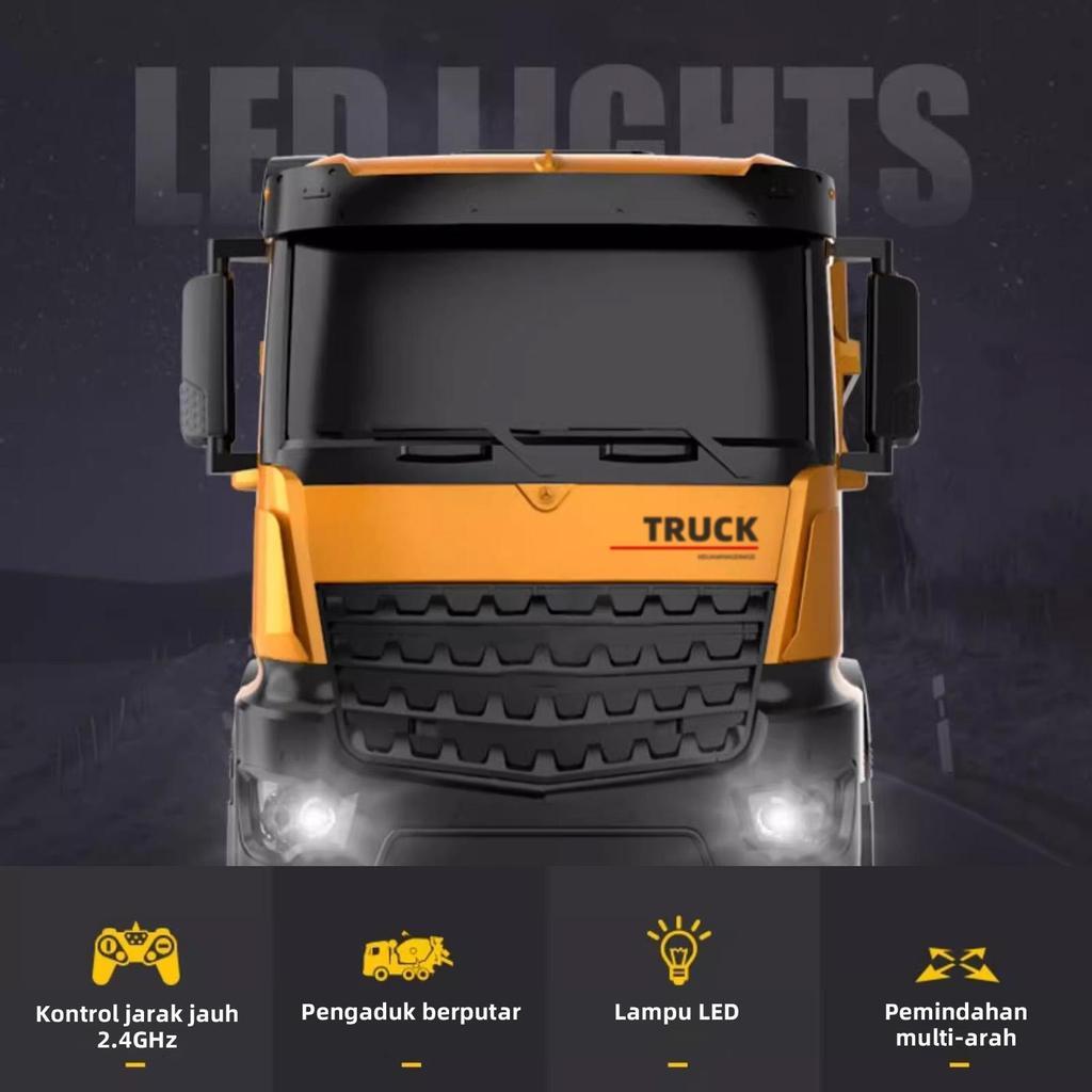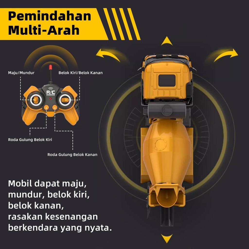 Truk Mixer Beton RC 2.4GHz dengan Drum Berputar - Mainan Konstruksi Anak, Lampu LED & Musik, Hadiah untuk Usia 3+