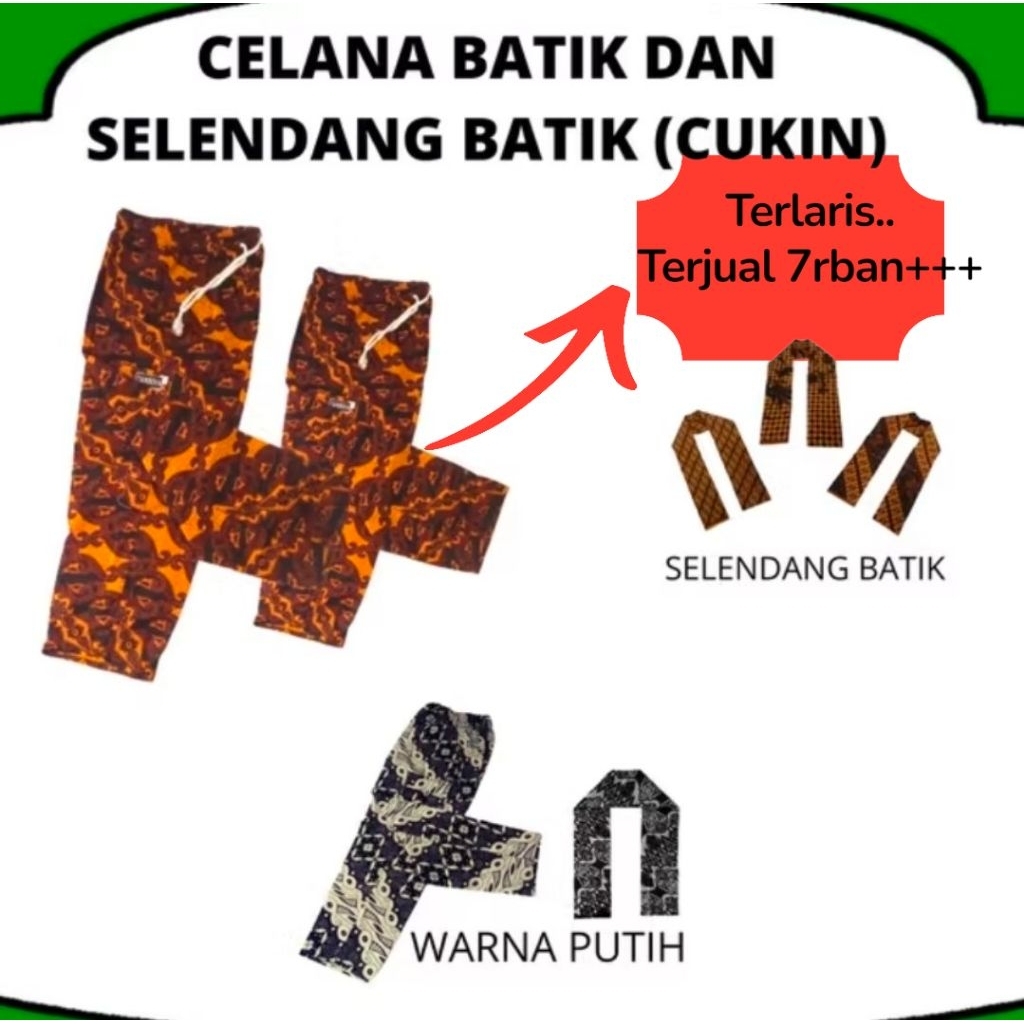Celana Batik Boim Dan Selendang Batik Anak Sampai Dewasa Warna Coklat Dan Putih I Selendang Batik Coklat Putih
