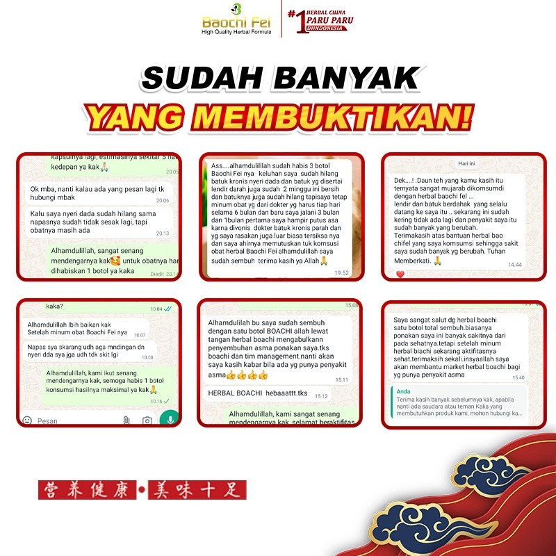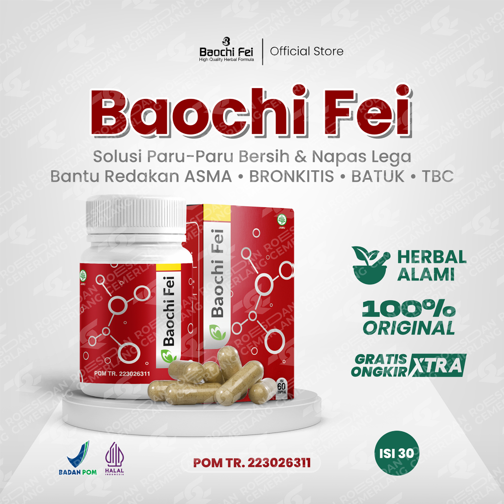 Baochi Fei Original BPOM – Obat Herbal Asma Meredakan Sesak Nafas & Batuk Kronis – Isi 60 Kapsul