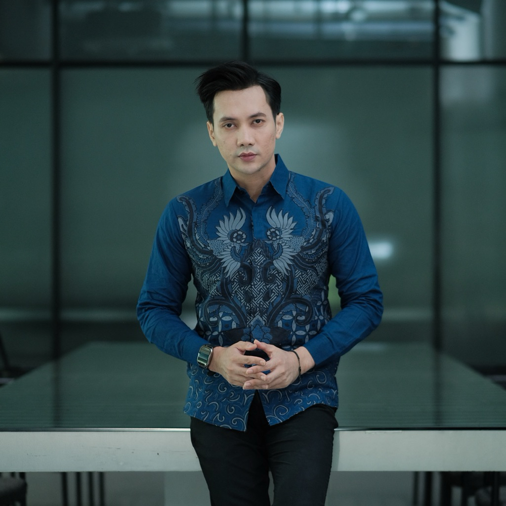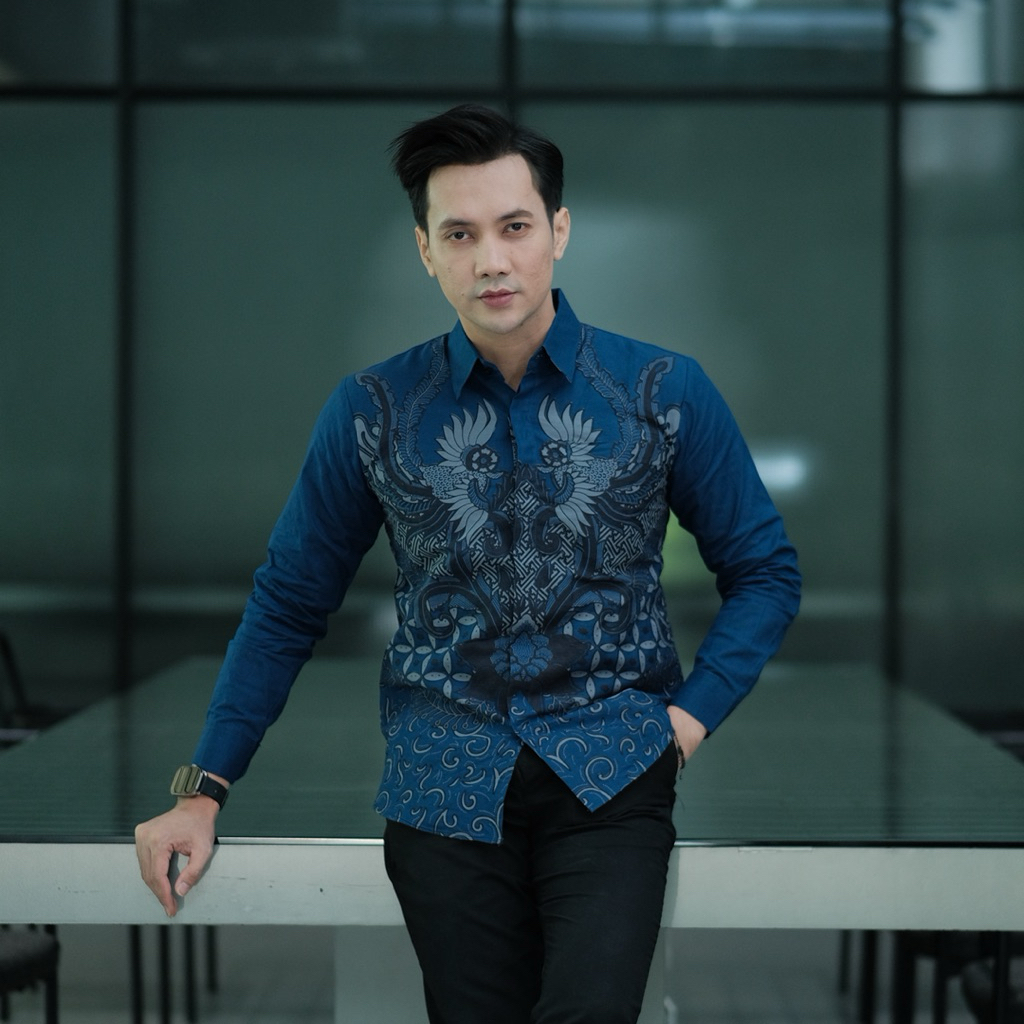 Niskala Biru Navy Kemeja Batik Pria Lengan Panjang Furing Full Katun Slimfit