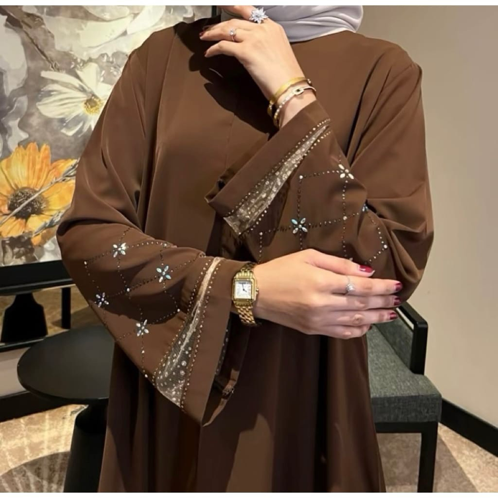 Abaya Qonita Payet Premium Gamis Muslim Anti UV Abaya Mesir Terbaru 2026 Gamis payet kristal