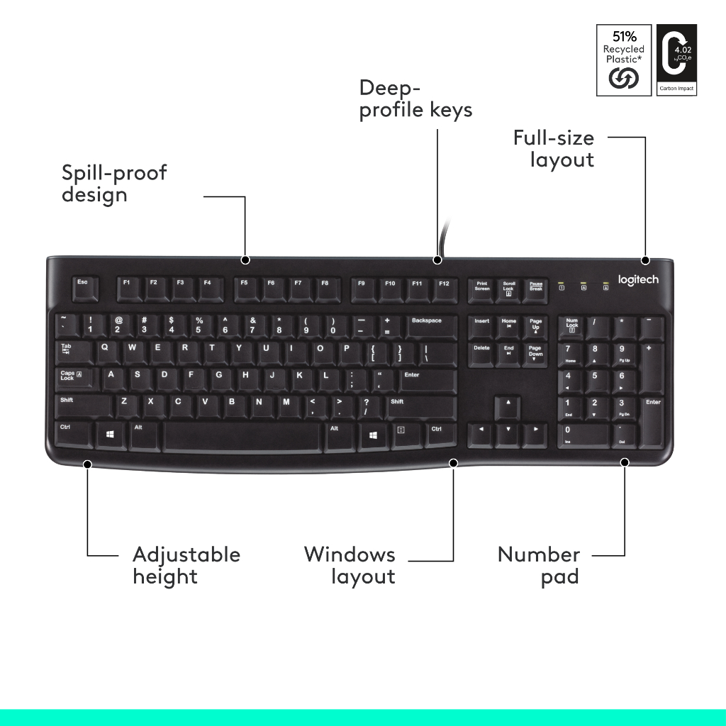Logitech K120 Keyboard Wired USB Full Size