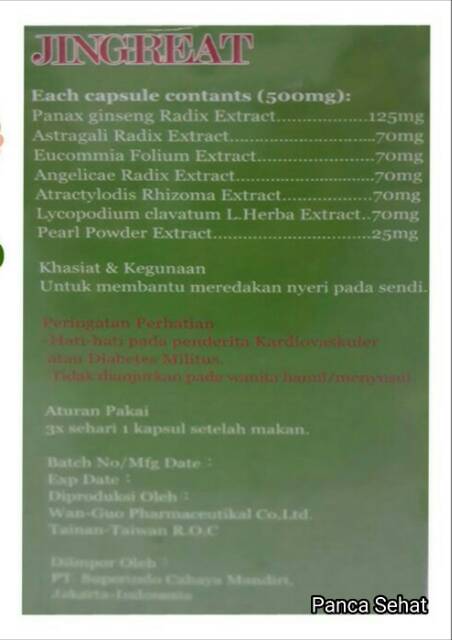 JINGREAT HERBAL ISI 90 CAPSULES - JIN KU LI, OBAT UNTUK SENDI & TULANG DLL
