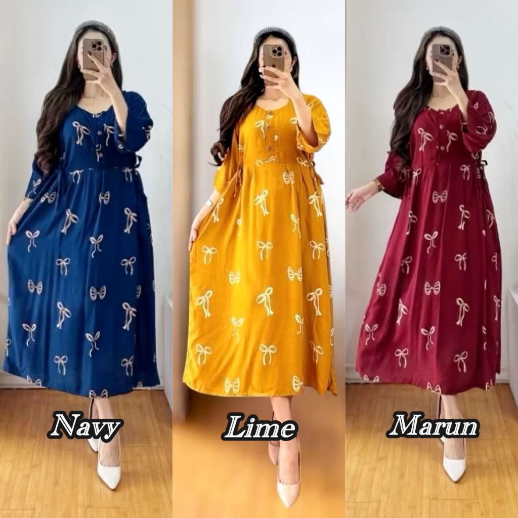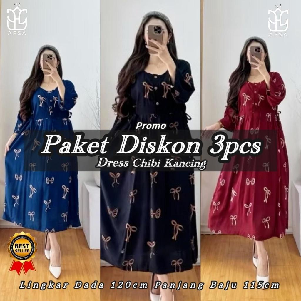 PAKET DISKON 3PCS LEBIH MURAH DRESS CHIBI PITA RAYON BUSUI KANCING DEPAN RAYON PREMIUM DASTER