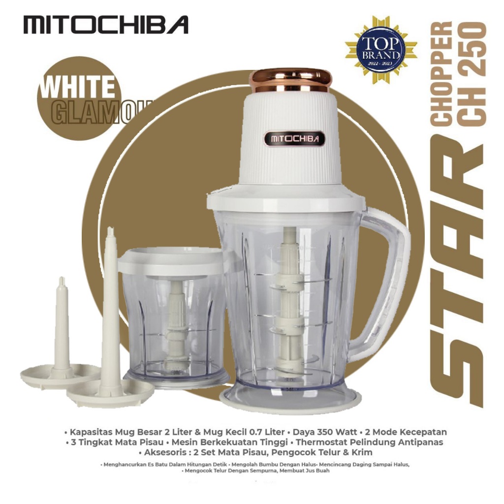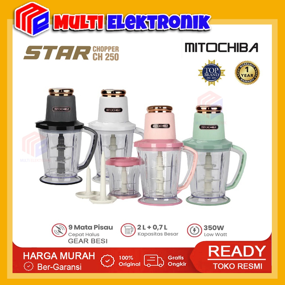 Mitochiba Chopper CH250 kapasitas 2 Liter 9 Mata Pisau New Star Blade 2 Speed 300 W 1 Tahun Garansi
