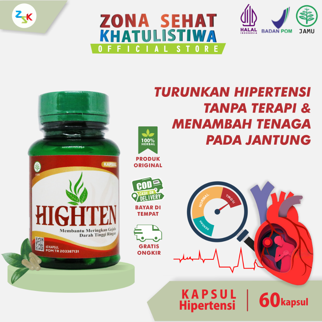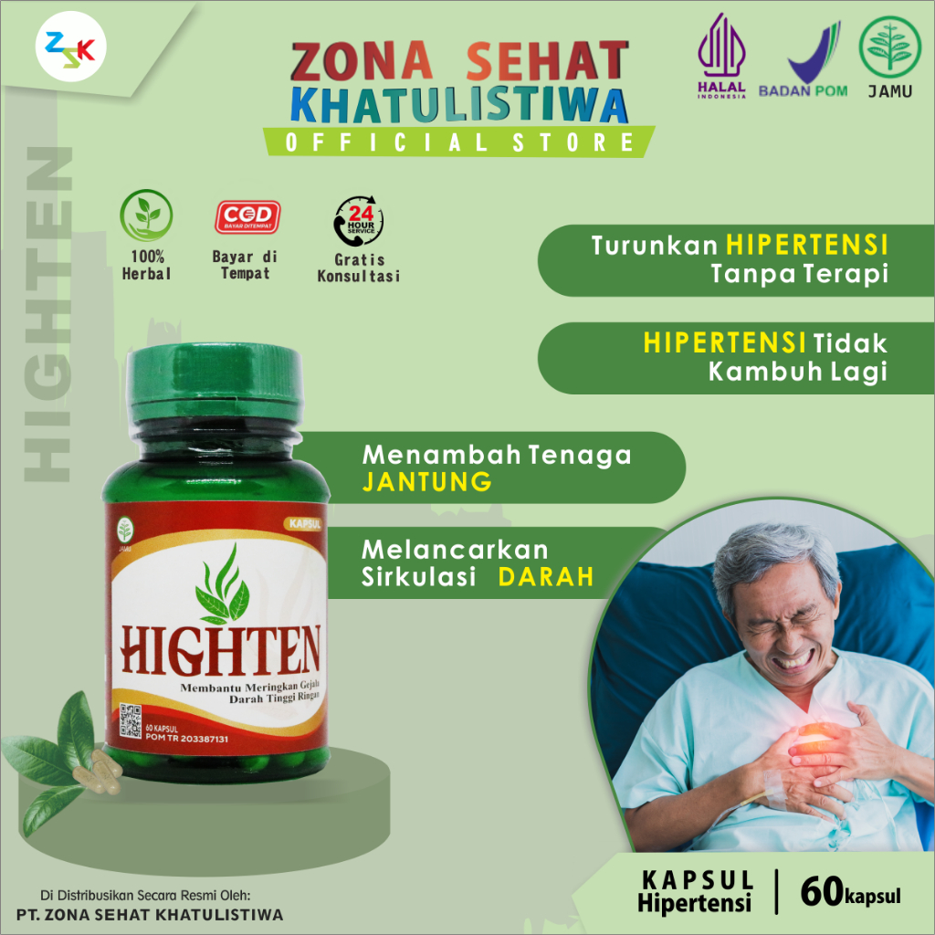 HIGHTEN Herbal Hipertensi Jantung 60 Kapsul Atasi Hipertensi Gagal Ginjal Stroke Sumbatan Arteri BPOM Original