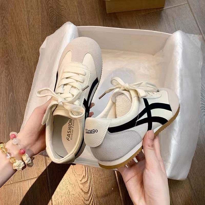 Sepatu Casual Wanita Sneake Kets Kasual Kulit Datar Putih Anti Selip ST096