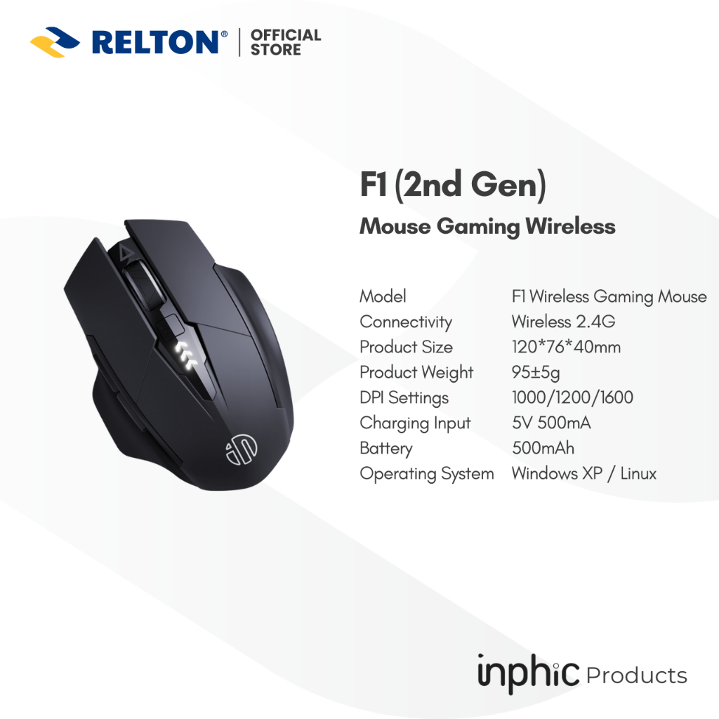 MOUSE GAMING WIRELESS SILENT CLICK RECHARGEABLE BATTERY F1 INPHIC