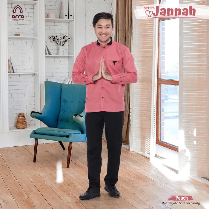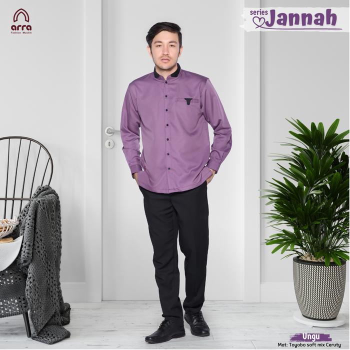 Baju Kemeja Koko Muslim Pria Dewasa Arra Indigo Lengan Panjang Premium