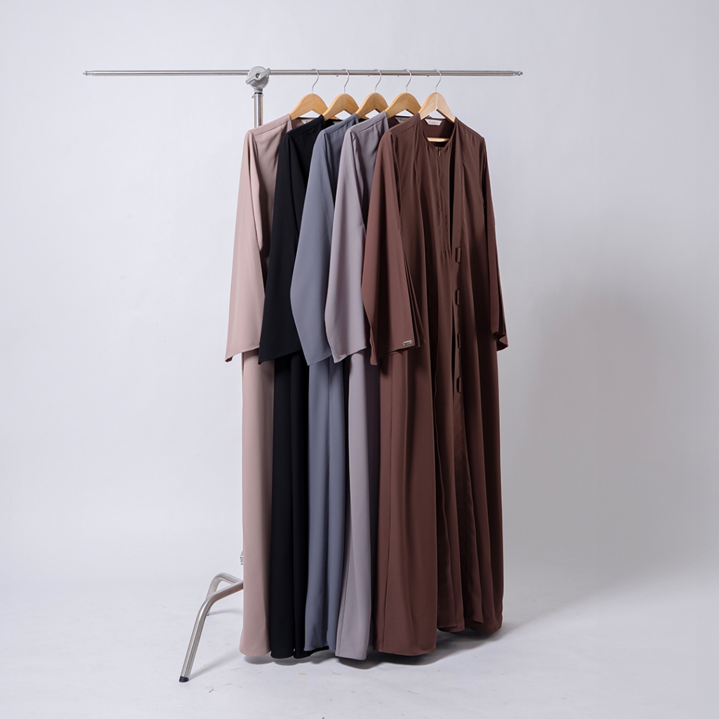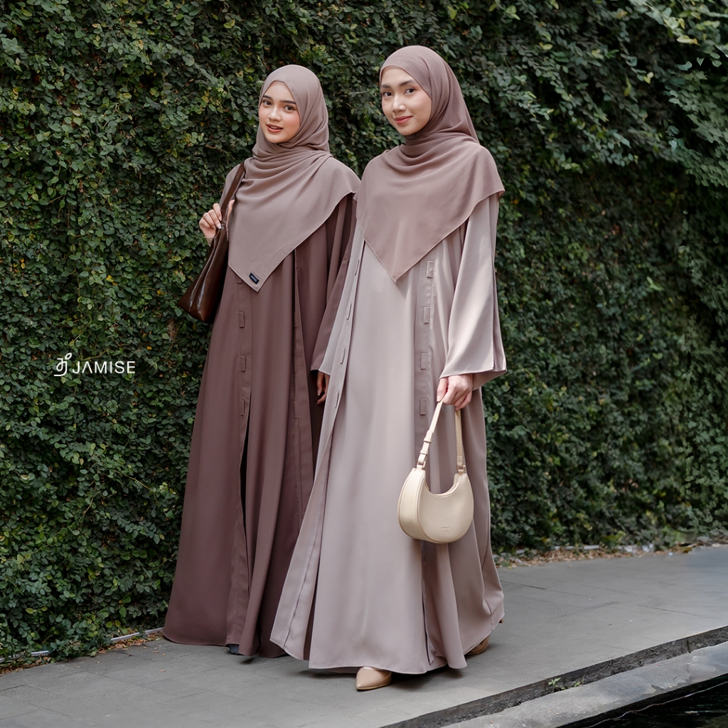 NEW ARRIVAL - Jamise | Shuwa Abaya | Gamis Outer Lebaran Lengan Loose Lipit Unik Detail Plaket dan Loop di Outer