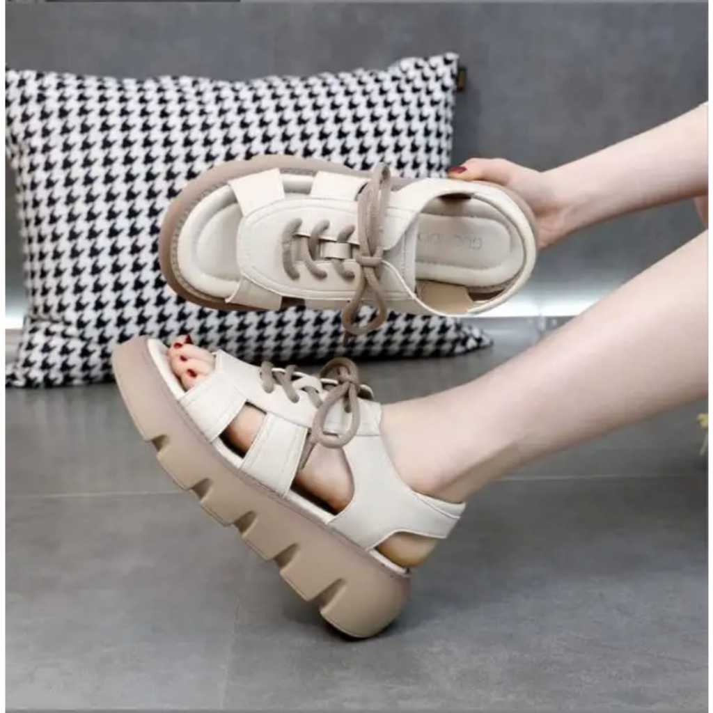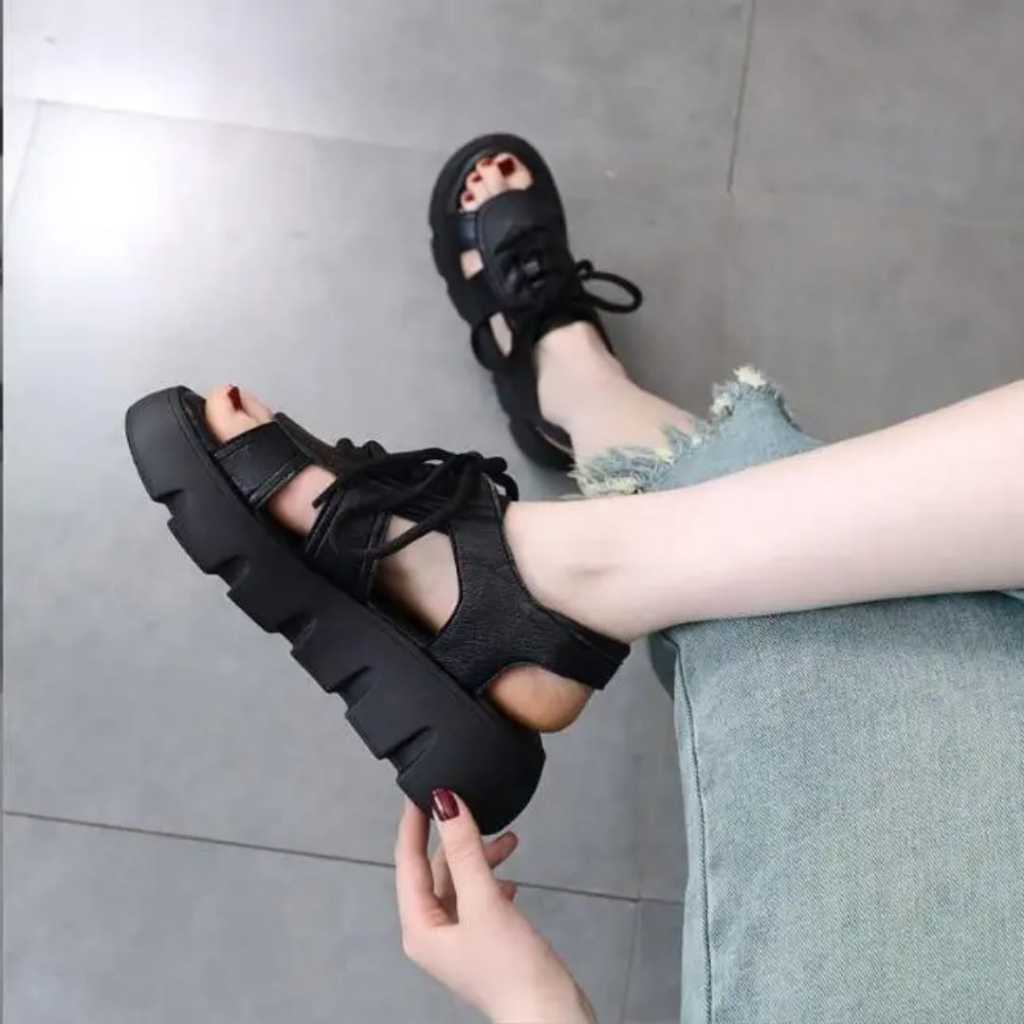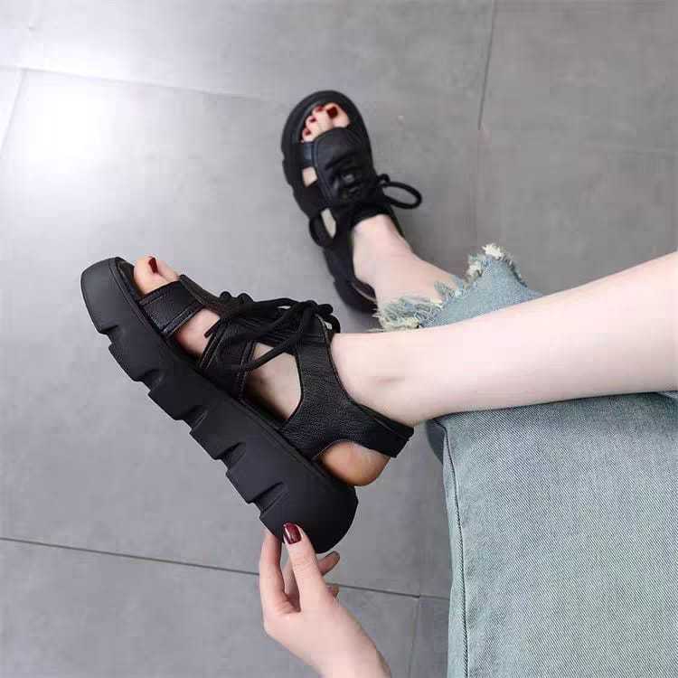 Sepatu Sandal Tali Wanita Korea Casual Hitam Putih Mocca St-01