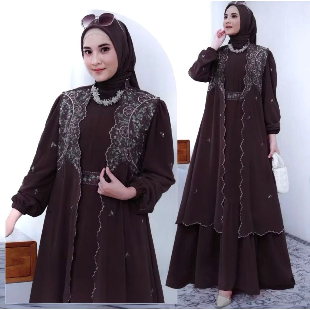 Syahira Dress Bordir Gamis Kekinian Gamis Kondangan Terbaru Mewah Elegan Bahan Ceruty BabyDoll Mix Bordir Gamis Burgundy Dress Wanita